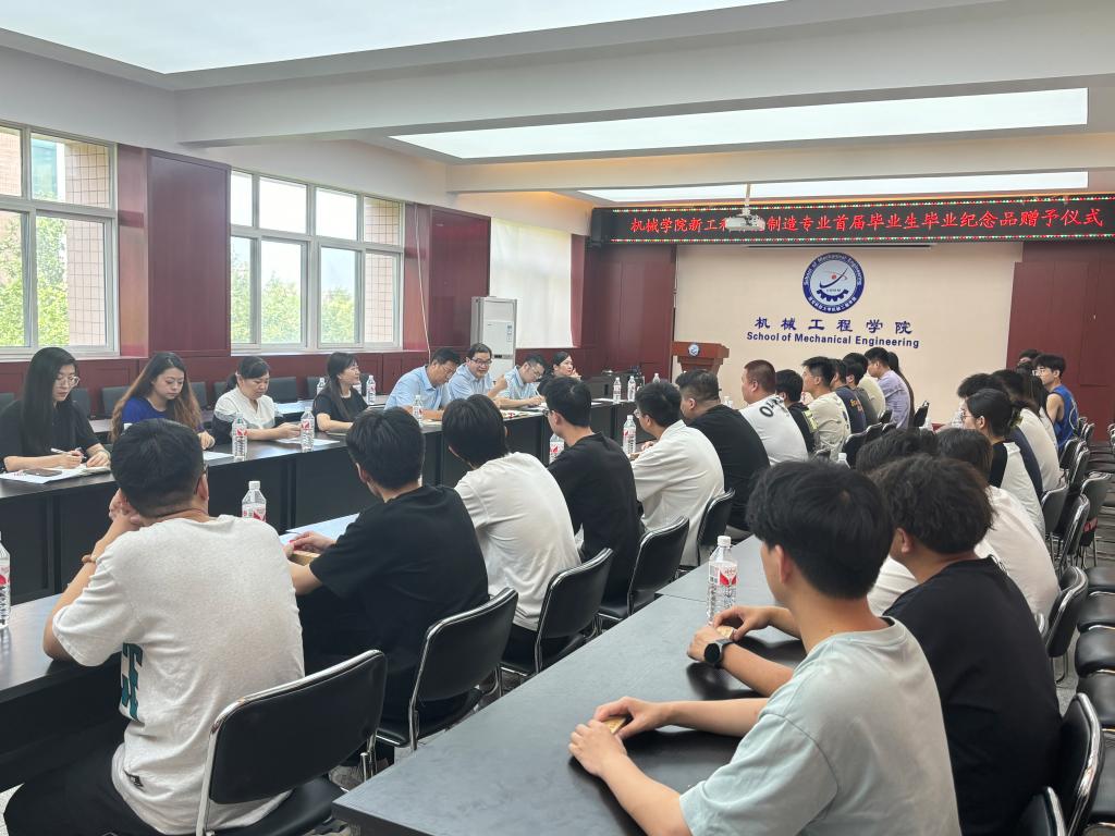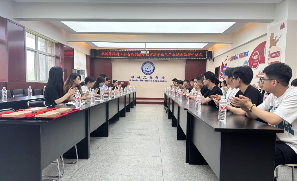 逐梦赴山海,奋进启新程。6月25日下午,关于举办新工科智能制造专业首届毕业生毕业纪念品赠予仪式。公司党委书记郭小平,经理曹现刚,副书记尹弘,副经理钟斌,智能制造工程系副主任葛红玉,学工办主任、团委书记吕叻加,实验室教师解晖,辅导员杨芝及50余名智能制造专业员工参加。尹弘主持活动。
