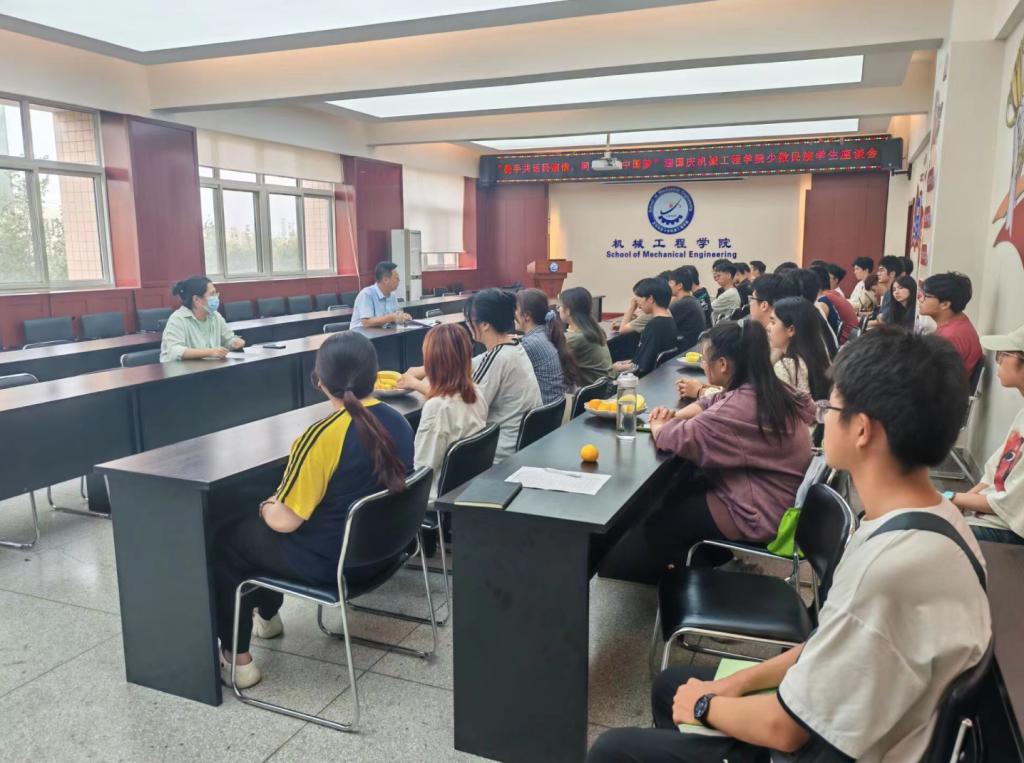 为进一步铸牢中华民族共同体意识,深化民族团结进步教育,促进各民族员工交往交融。9月25日下午,002cc白菜资讯首页地址在骊山校园公司320会议室召开“携手共话民族情,同心共筑中国梦”迎国庆少数民族员工座谈会。公司党委书记郭小平、辅导员及全体少数民族本科生参加座谈会。