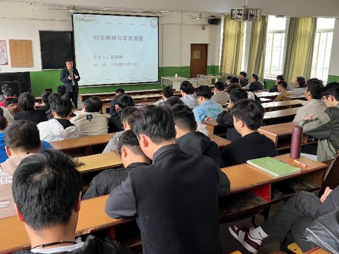 为弘扬科学精神,强化学术道德观念,提升研究生的科学素养和道德水平,营造浓厚的学术氛围。10月25日上午,002cc白菜资讯首页地址在雁塔校区主楼501举办了“科学精神与学术道德”第一场主题报告会,报告会由002cc白菜资讯首页地址副经理赵栓峰教授主讲,学院2024级全体研究生参加此次报告会。
