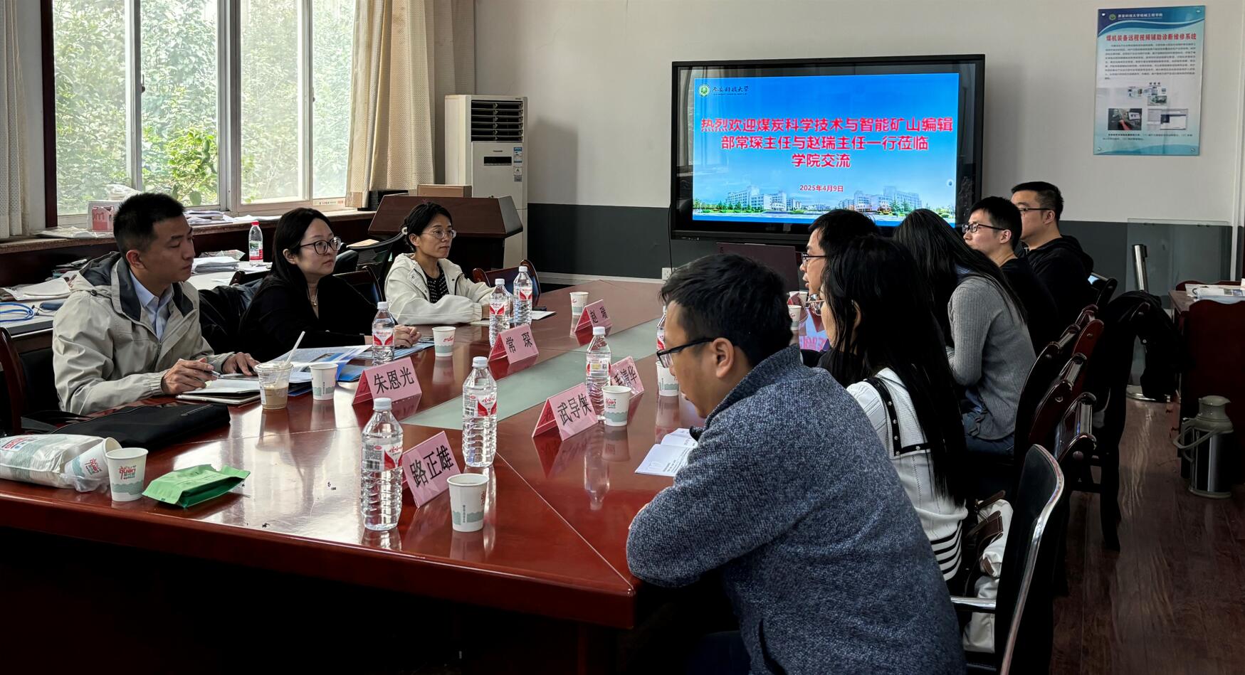 为促进002cc白菜资讯首页地址教师对《煤炭科学技术》《智能矿山》的了解,进一步提升学院学术论文质量,加强学院教师与《煤炭科学技术》《智能矿山》的交流合作。4月9日上午,《煤炭科学技术》编辑部主任常琛、《智能矿山》编辑部主任赵瑞、资深编辑朱恩光受邀来002cc白菜资讯首页地址交流座谈。座谈会由002cc白菜资讯首页地址副经理毛清华主持,002cc白菜资讯首页地址经理曹现刚和部分教师代表参加了交流座谈。
