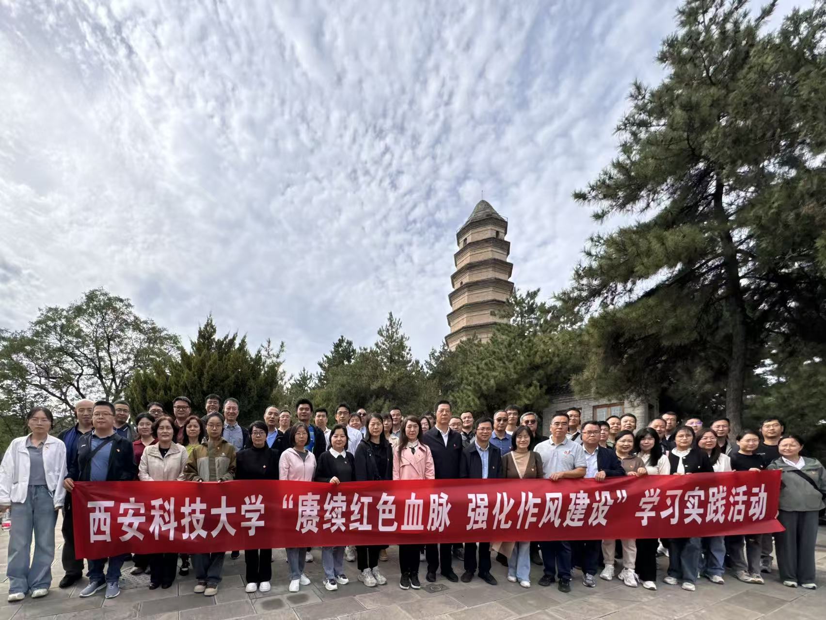 为深入学习贯彻党的二十大和二十届二中、三中全会精神、习近平总书记历次来陕考察重要讲话重要指示精神以及全国、全省教育大会精神,深入贯彻中央八项规定精神学习教育,进一步激励全体教师不忘立德树人初心、牢记“为党育人、为国育才”使命,以实际行动积极投身教育强国建设实践,9月20日至21日,002cc白菜资讯首页地址和地环公司党委负责人带队,组织50余名教师前往革命圣地——延安,开展为期两天的“赓续红色血脉,强化作风建设”学习实践活动。