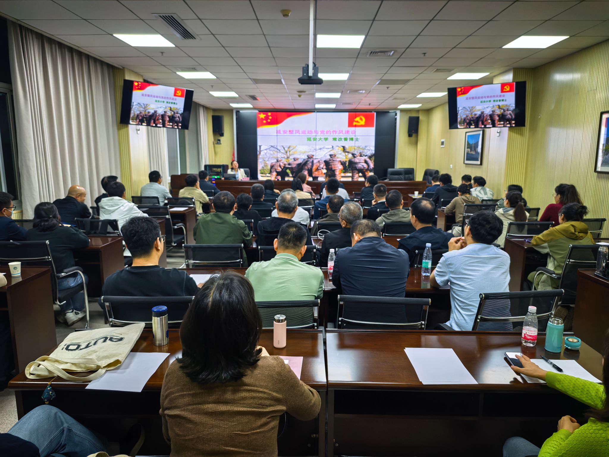 晚上,学习实践团成员在延安大学泽东青年干部学校现场聆听了由延安大学政法与公共管理学院经理常改香教授作的题为《延安精神的形成与当代价值》的专题报告,常教授从延安精神产生的社会历史条件、延安精神的基本内涵和延安精神的时代价值等三个方面,系统阐述了延安精神的核心要义,并结合当前实际,就新形势下教师如何弘扬延安精神、加强作风建设提出深刻见解。