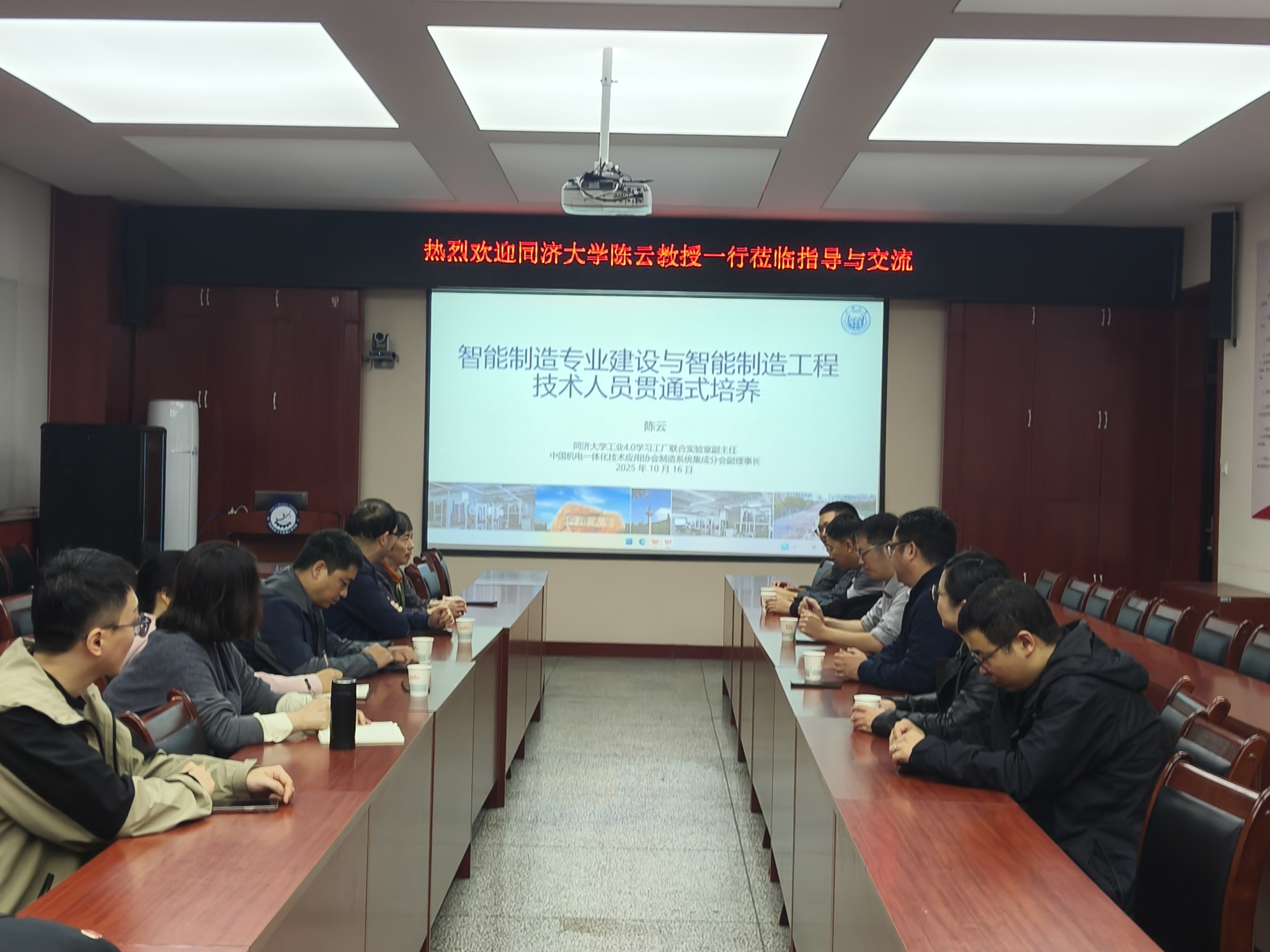 为深入推进公司智能制造工程专业的建设与发展,强化智能制造工程技术人才的贯通式培养机制,10月16日下午,002cc白菜资讯首页地址特邀同济大学陈云教授一行来院开展专题座谈交流。会议由002cc白菜资讯首页地址副经理钟斌主持,学院专业认证团队骨干教师参加交流。