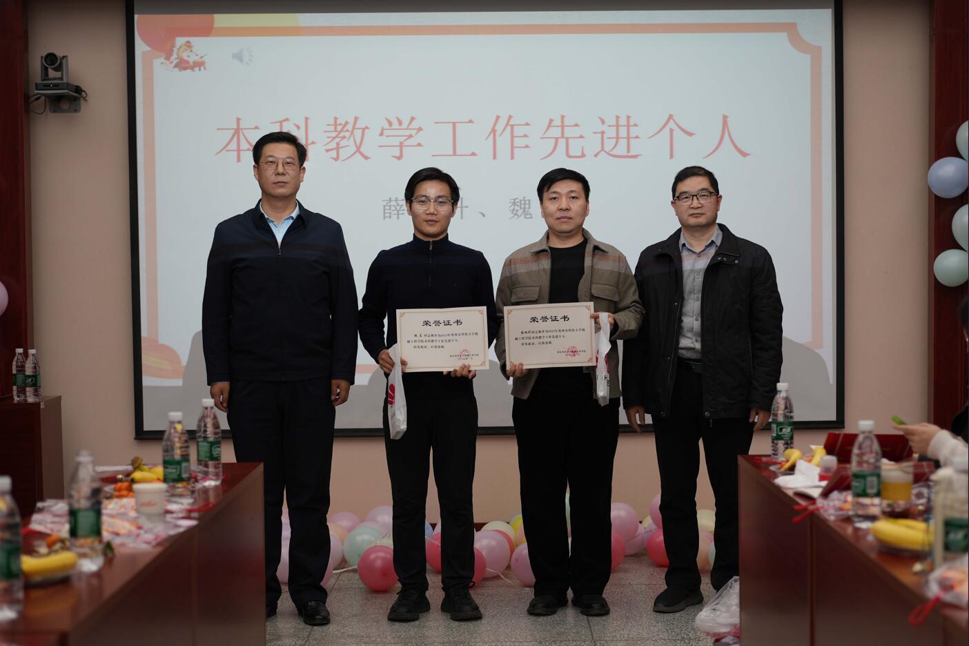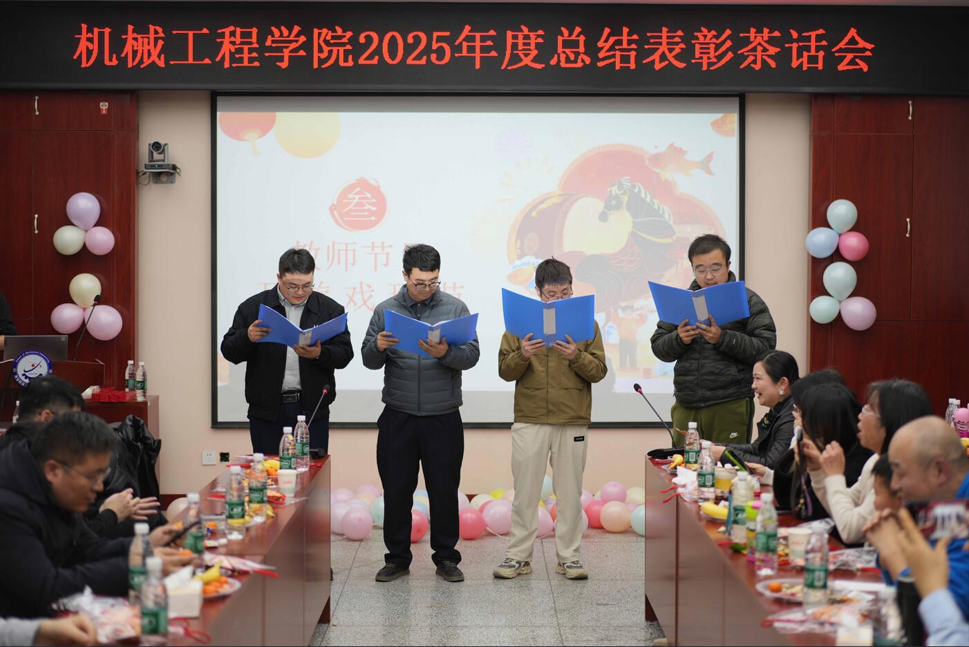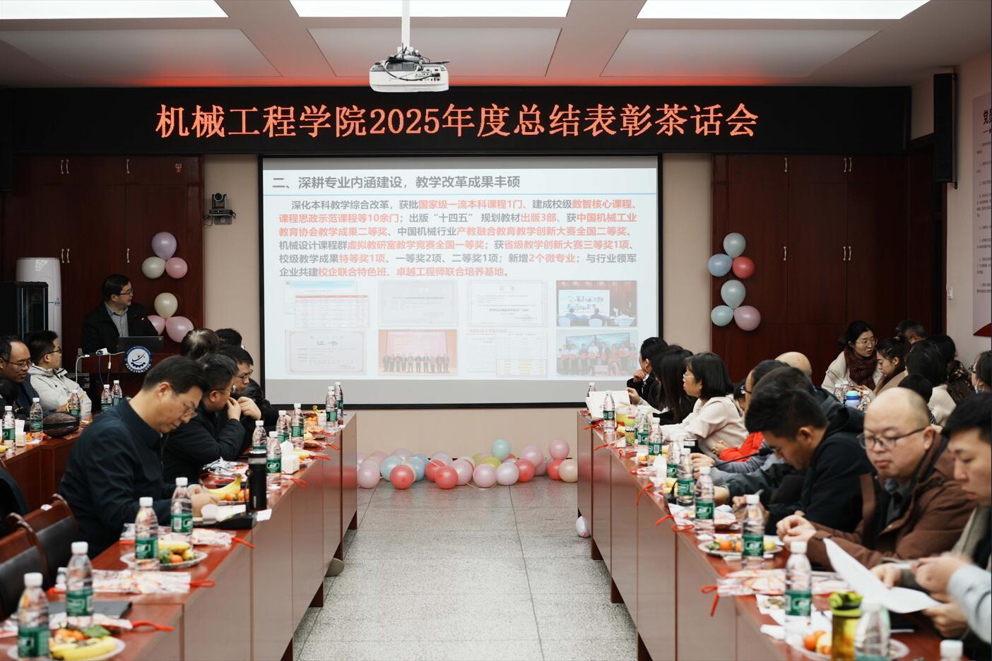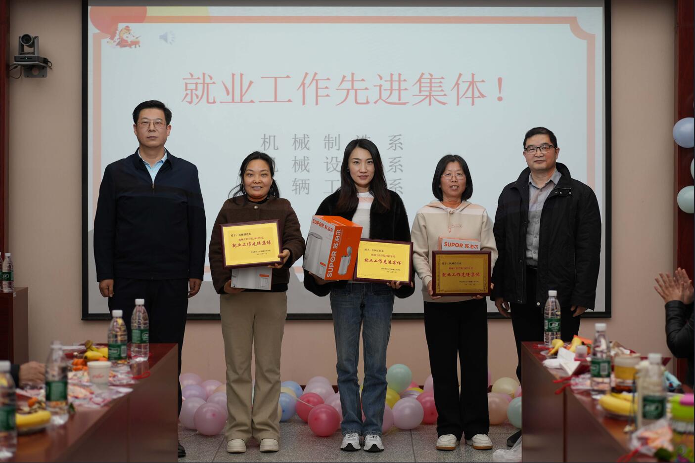 活动第二阶段为表彰环节。学院对2025年度在就业工作中表现突出的机械制造系、机械设计系、车辆工程系授予“就业工作先进集体”荣誉称号,郭小平、曹现刚为获奖集体颁发了奖牌和奖品。同时,对在本科教学、研究生教育、科技竞赛、科研创新、团队建设、工会服务等工作中取得优异成绩的个人进行了表彰。学院班子成员依次为获奖教师颁发荣誉证书,现场气氛热烈,掌声不断。