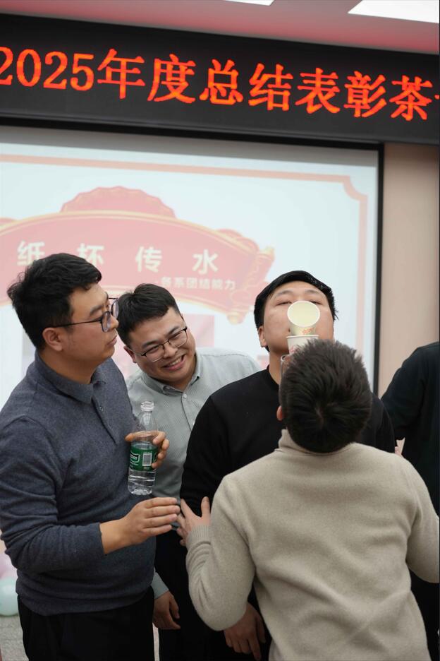 活动第三阶段为茶话会。各系节目精彩纷呈,现场笑语连连。穿插进行的即兴抢答、“击鼓传礼”“纸杯传水”“萝卜蹲”等互动游戏,更是将气氛推向高潮,大家在欢声笑语中交流情感,凝聚情谊。