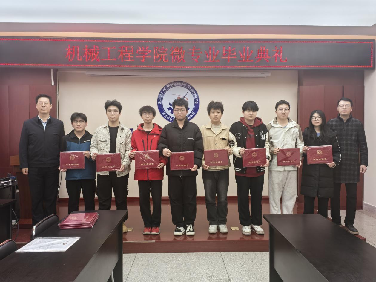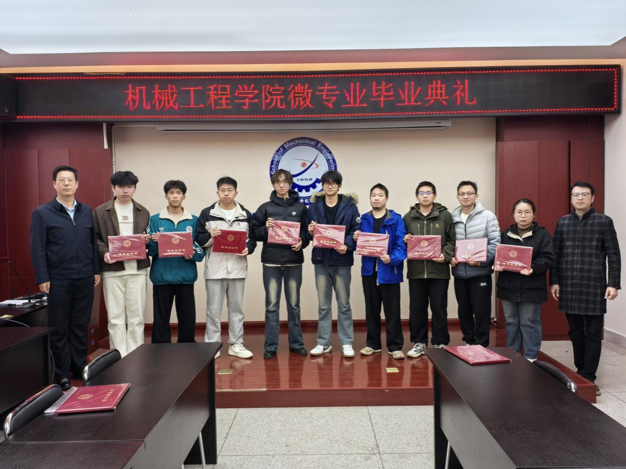 活动中,钟斌详细介绍了本年度开设的新能源汽车工程、智能车辆设计、智能化设计与制造、智能机电工程四个微专业的基本情况以及员工参与本次微专业学习的情况,本年度学院累计75人参加微专业学习,其中75顺利结业,结业率100。并阐释了微专业紧密对接国家战略新兴产业发展需求,旨在打破学科壁垒,融合机械、电子、控制和信息等多学科知识,形成了“模块化、项目化、交叉化”的人才培养特色,提升了员工的跨学科知识整合能力与工程实践创新能力,助力在校老员工未来多一种可能!随后,与会领导和微专业负责人共同为圆满完成学业的同学们颁发了结业证书。