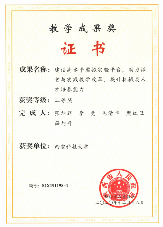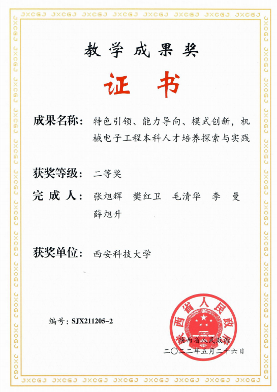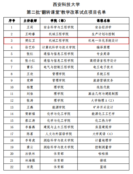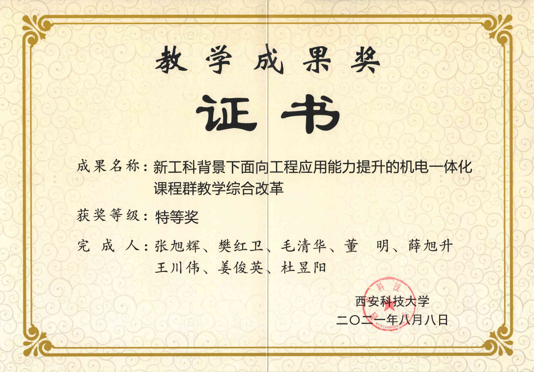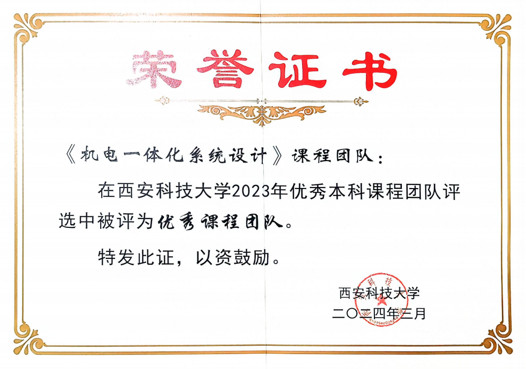 002cc白菜资讯首页地址《机电一体化系统设计》课程组在张旭辉教授、樊红卫副教授带领下,坚持为党育人,为国育才,立德树人根本宗旨,从教材编写到课程建设,开展了全方位的公司产品改革,入选了陕西省一流课程,支撑了机械电子工程专业入选国家级一流专业建设点。主要建设成果如下: