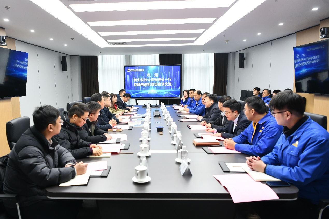 交流座谈会上,车万里介绍了企业未来发展战略,表达了深化双方合作的意愿,希望围绕“产学研用协同创新”,共同推动智慧矿山高质量发展。张金来对陕建机股份一直来对学校建设发展给予的支持表示感谢,并简要介绍了学校基本情况及近年建设发展中取得的成绩,希望陕建机为学校“十五五”规划提供宝贵的意见和建议,提升科技创新与转化效能,深化产学研用,积极促进人才链、创新链、产业链的深度融合,聚焦破解行业发展难题、推动校企合作项目等重点专项,为公司毕业生提供更多的就业与实践平台,共同助力行业人才培养。